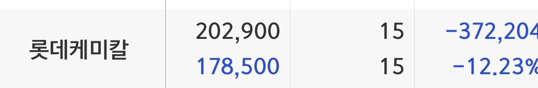 저는 롯데케미칼 주식 15주를 보유하고 있습니다.