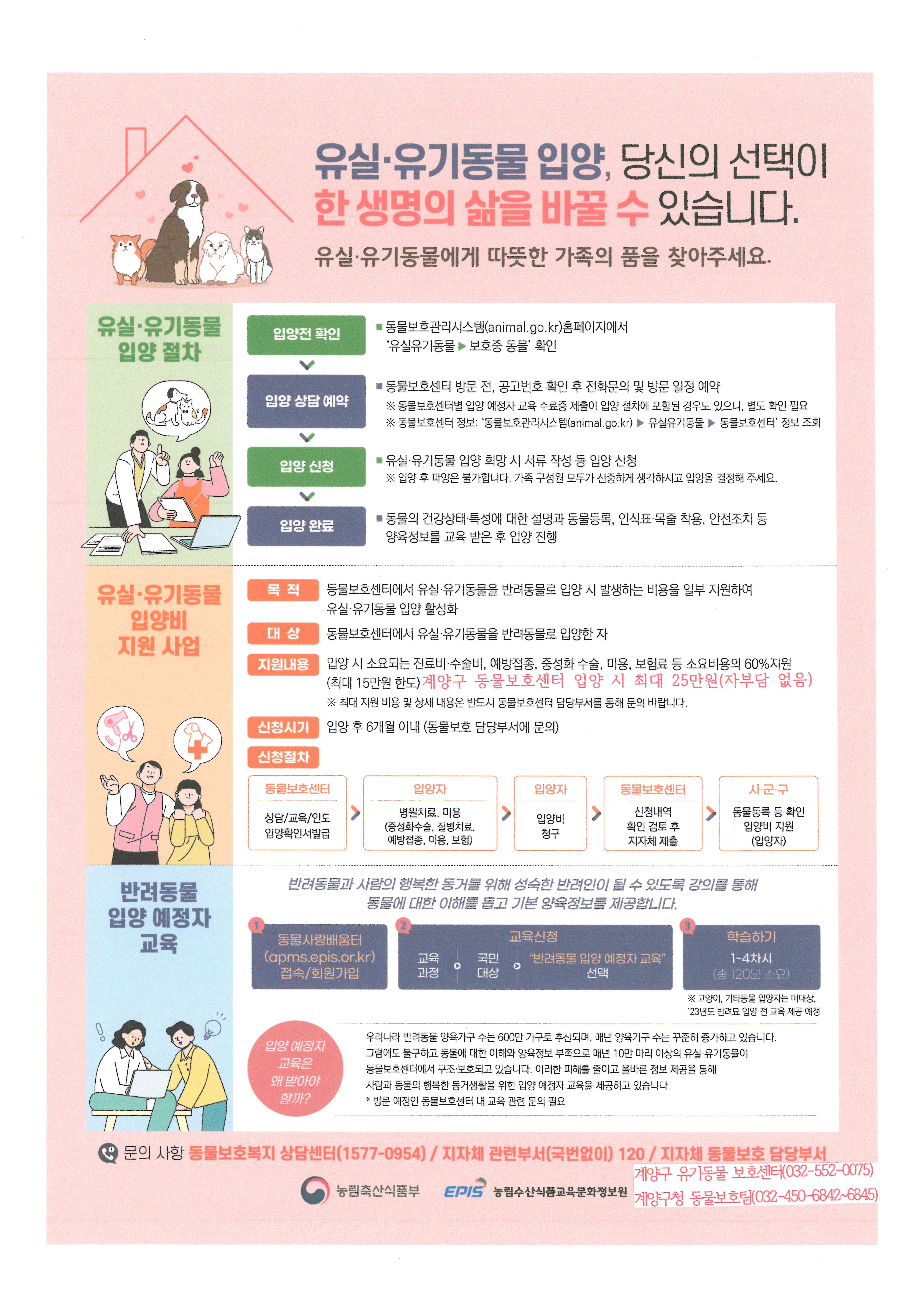계양구 동물보호센터 입양 시 최대 25만원 (자부담 없음)