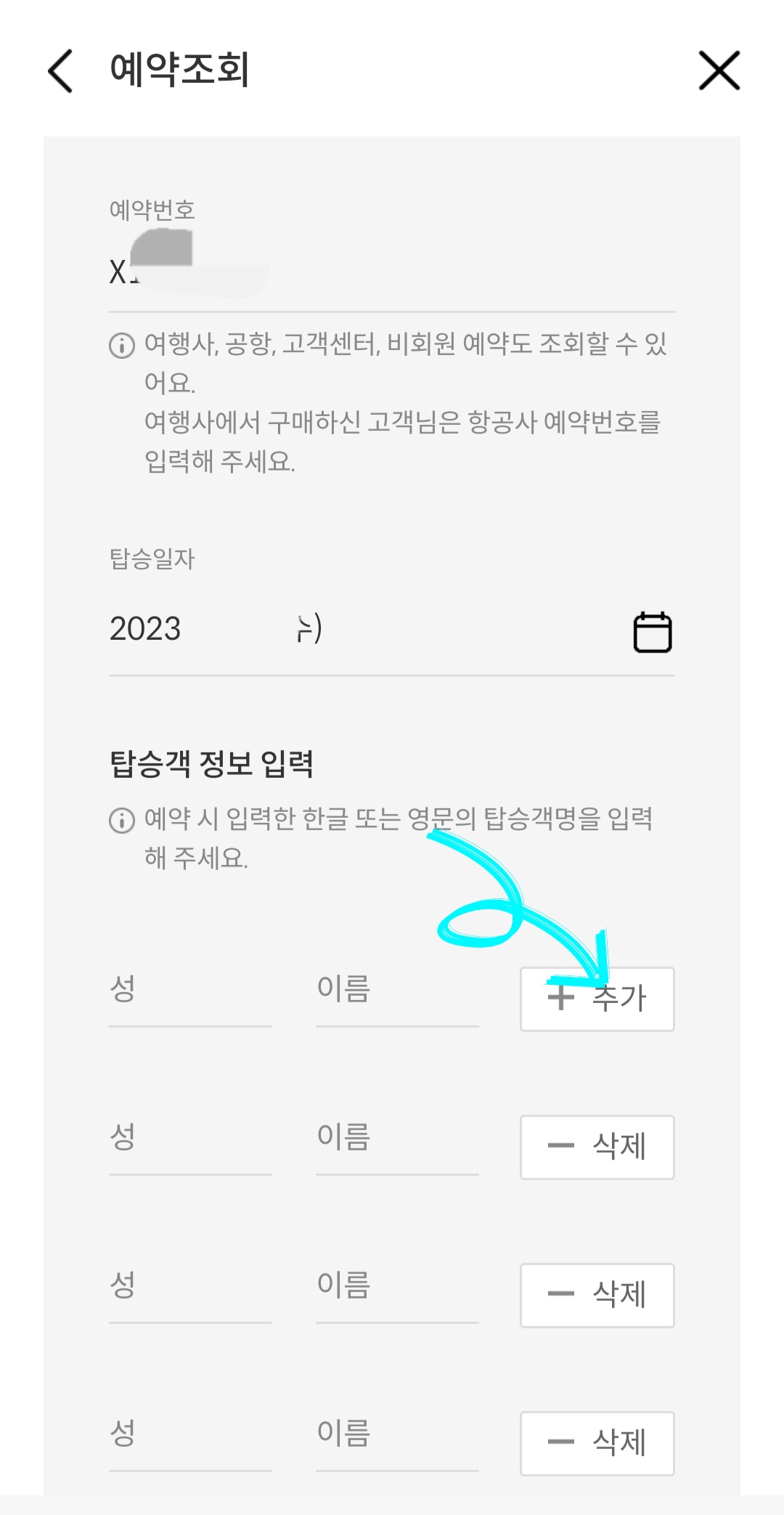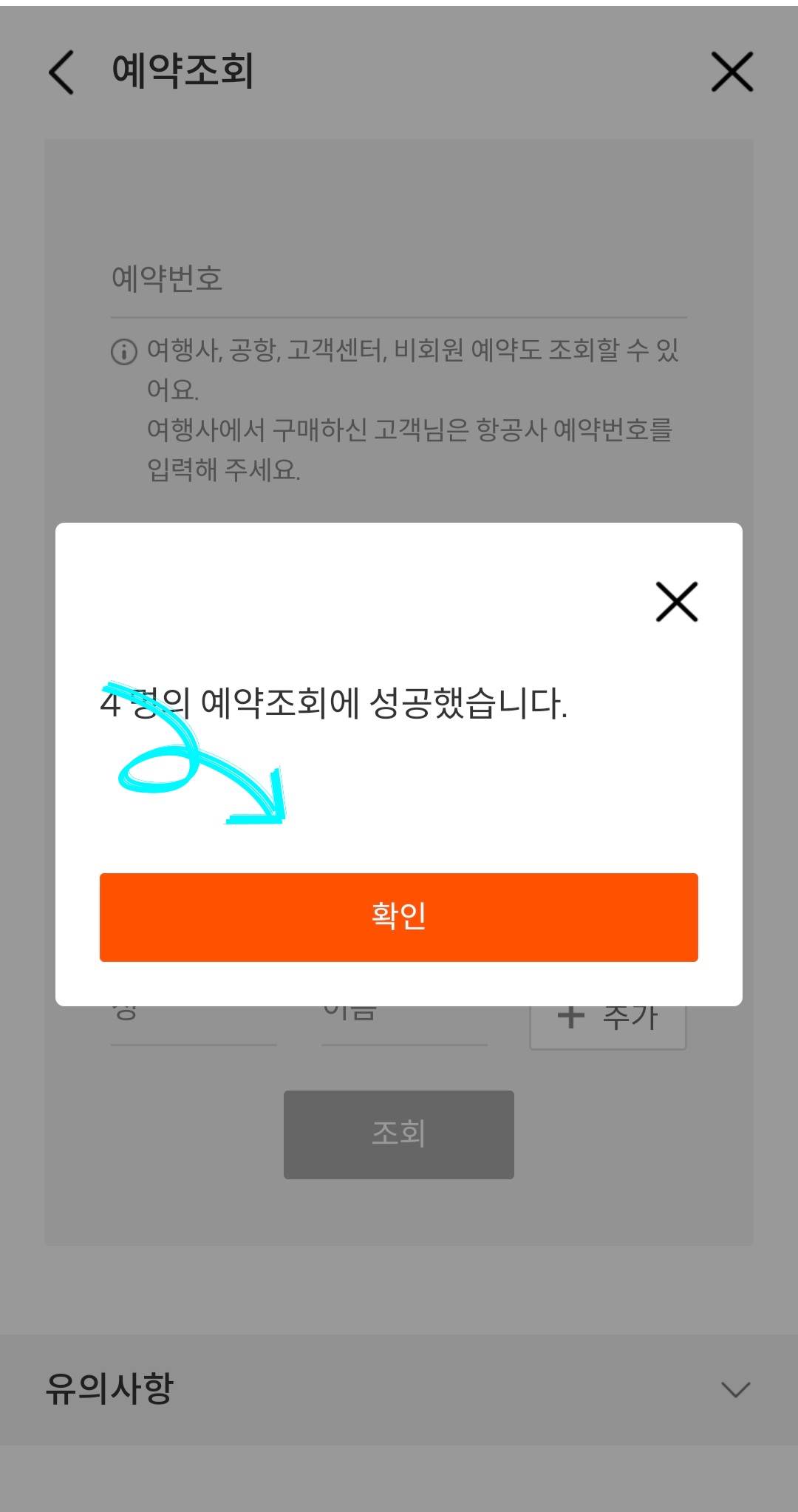 영문이름을 정확히 입력한 인원만큼 예약조회가 됩니다.