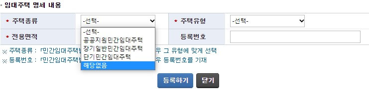 8. 임대주택 입력 선택