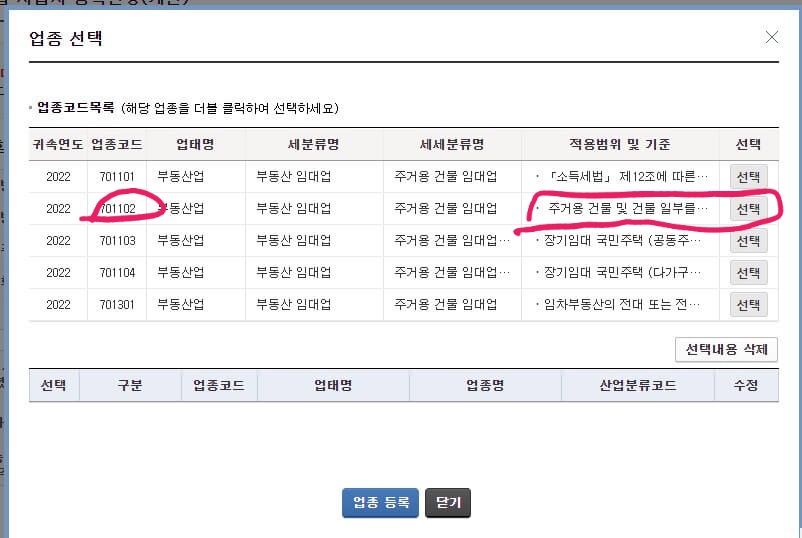 사업자등록간편신청- 주택임대업 선택