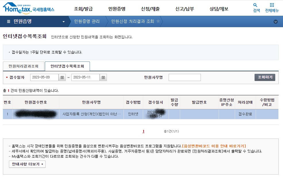 12. 민원증명 클릭 -> 민원증명 관리 -> 민원신청 처리결과 조회