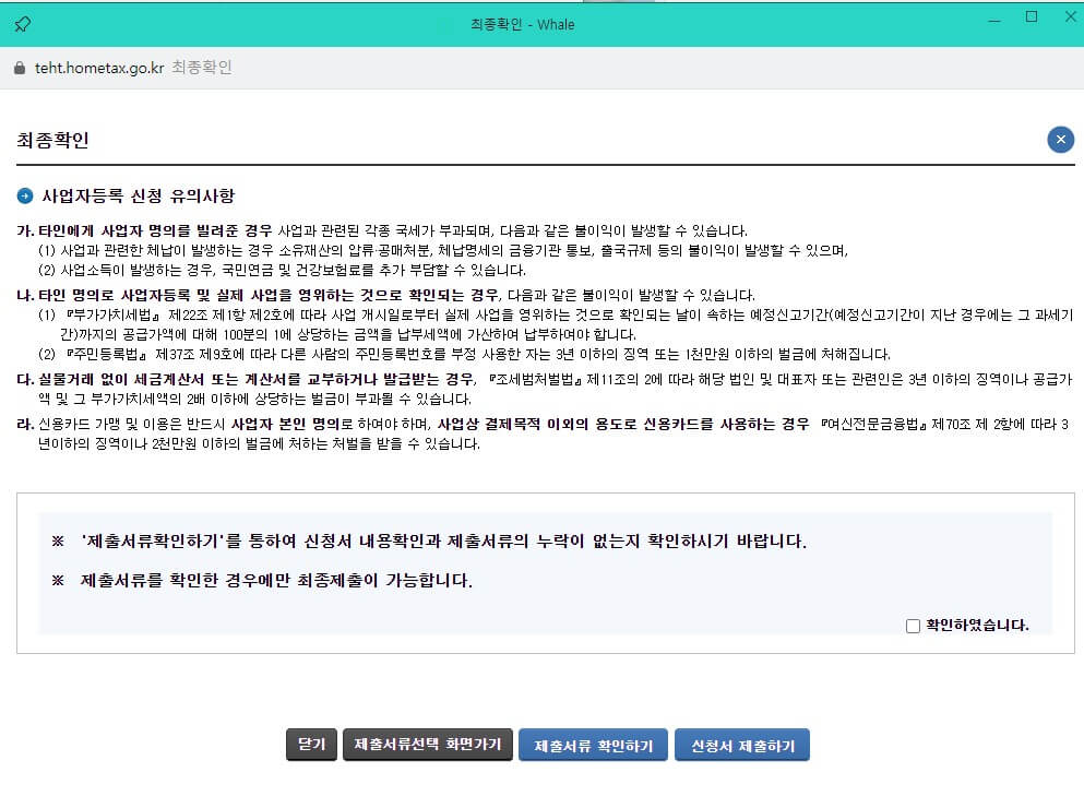 잘 읽어보시고 "확인하였습니다." 체크