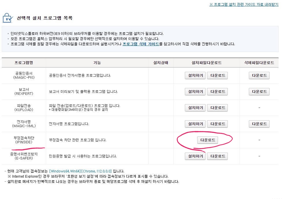4. 저는 부정접속차단 프로그램을 설치하라고 나오네요.